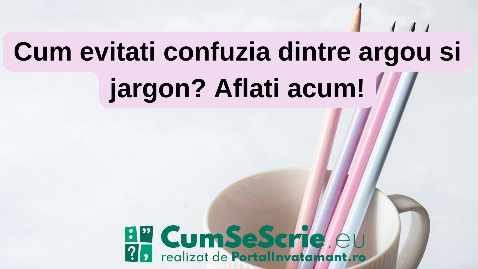 Intre cele doua categorii, argou si jargon, se poate face confuzie cu usurinta, pentru ca ambele reprezinta, sub un anumit aspect, un limbaj aparte, folosit doar de unele categorii socio-pro fesionale si inaccesibile celorlalti.