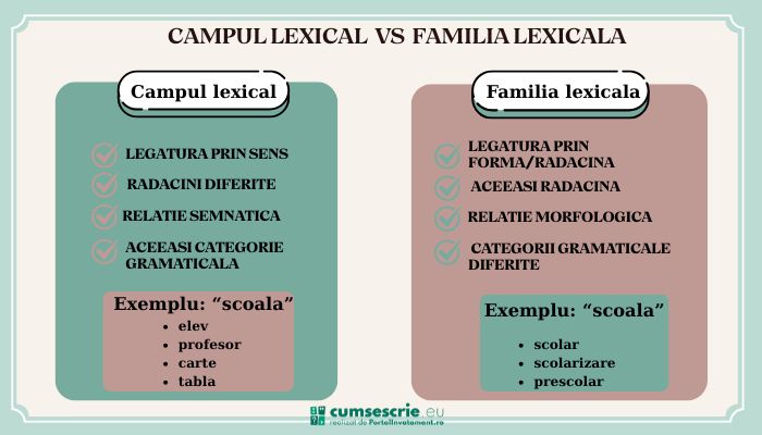 Campul lexical si familia lexicala sunt doua concepte diferite, desi adesea confundate.